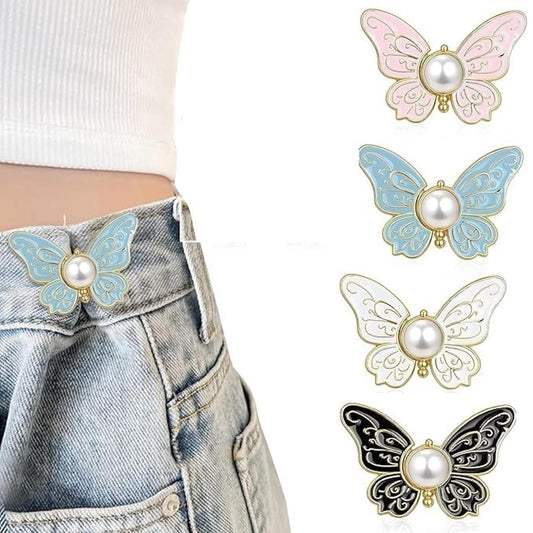 Butterfly Jeans Clip - Adjustable Waist Tightener with Faux Pearl Center (4 PCS)